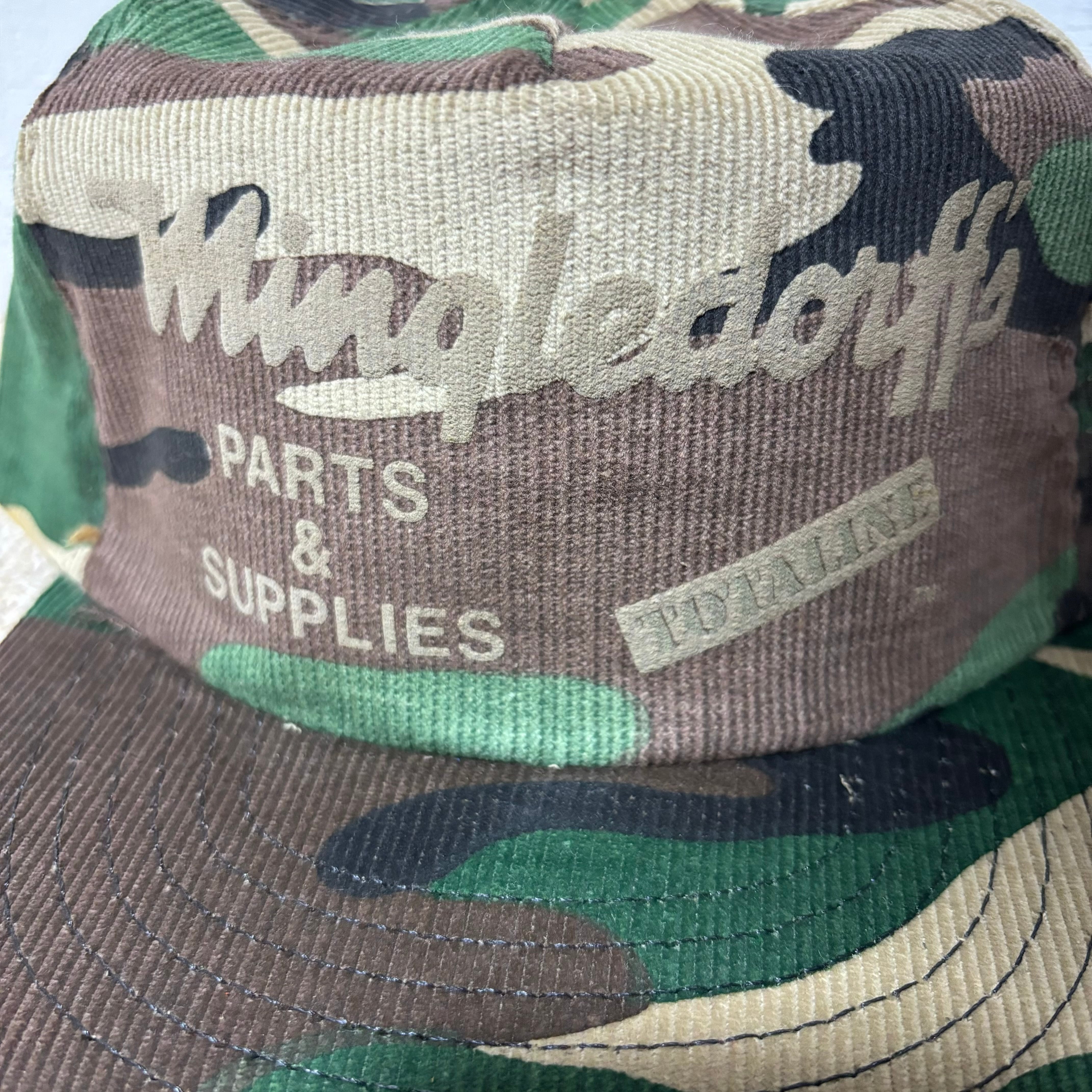 コーデュロイ素材のキャップはビンテージ市場でも非常に人気があり、その中でも迷彩柄の総柄プリントはレアなアイテムです。