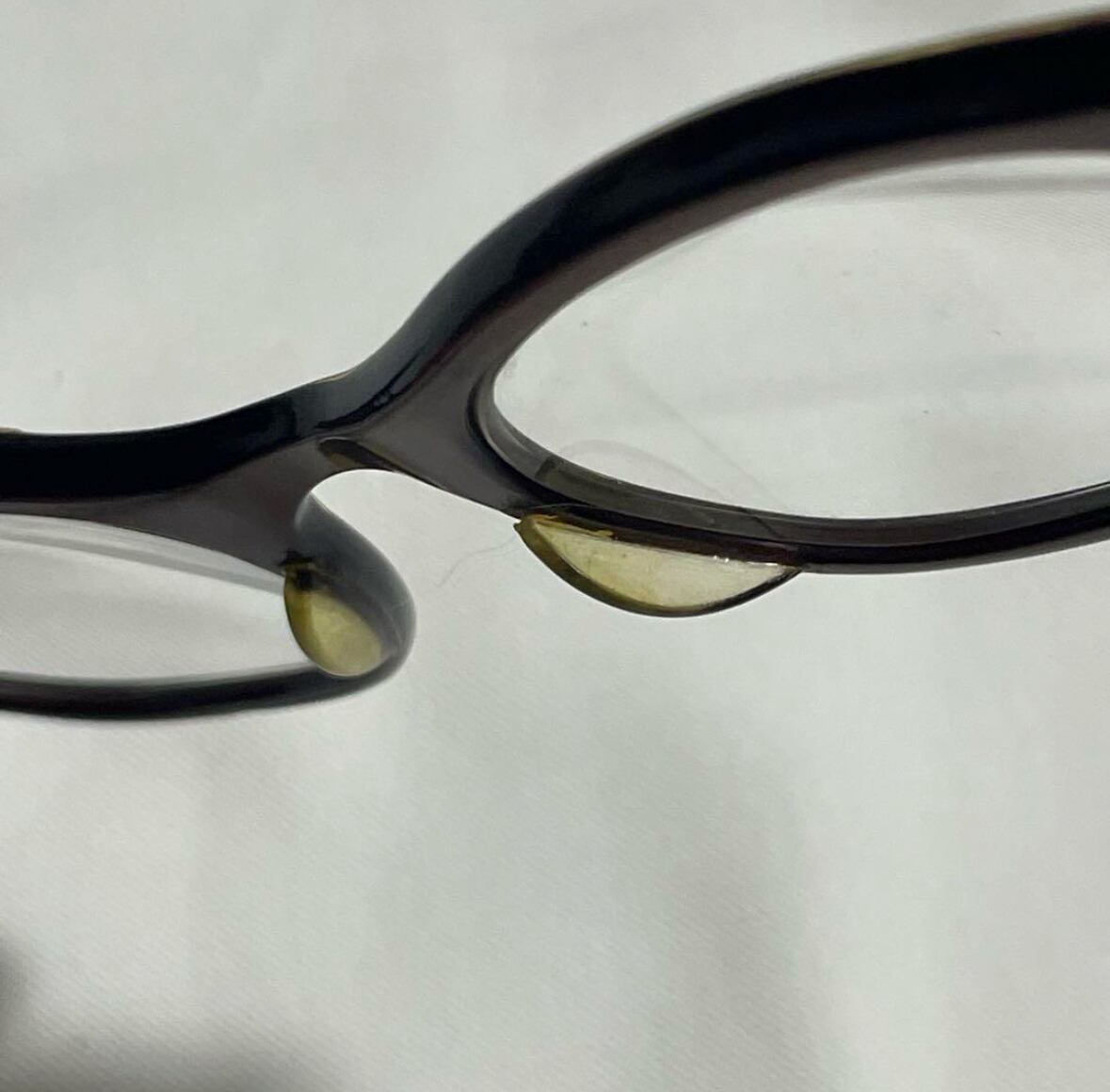 ノーズパッドの根元と右テンプル根元にわずかなクラック、年代なりの小傷や擦れが見えますが、全体的に艶、フレームの強度も残っている為、年代を考慮すると実用可能な良品と感じます。