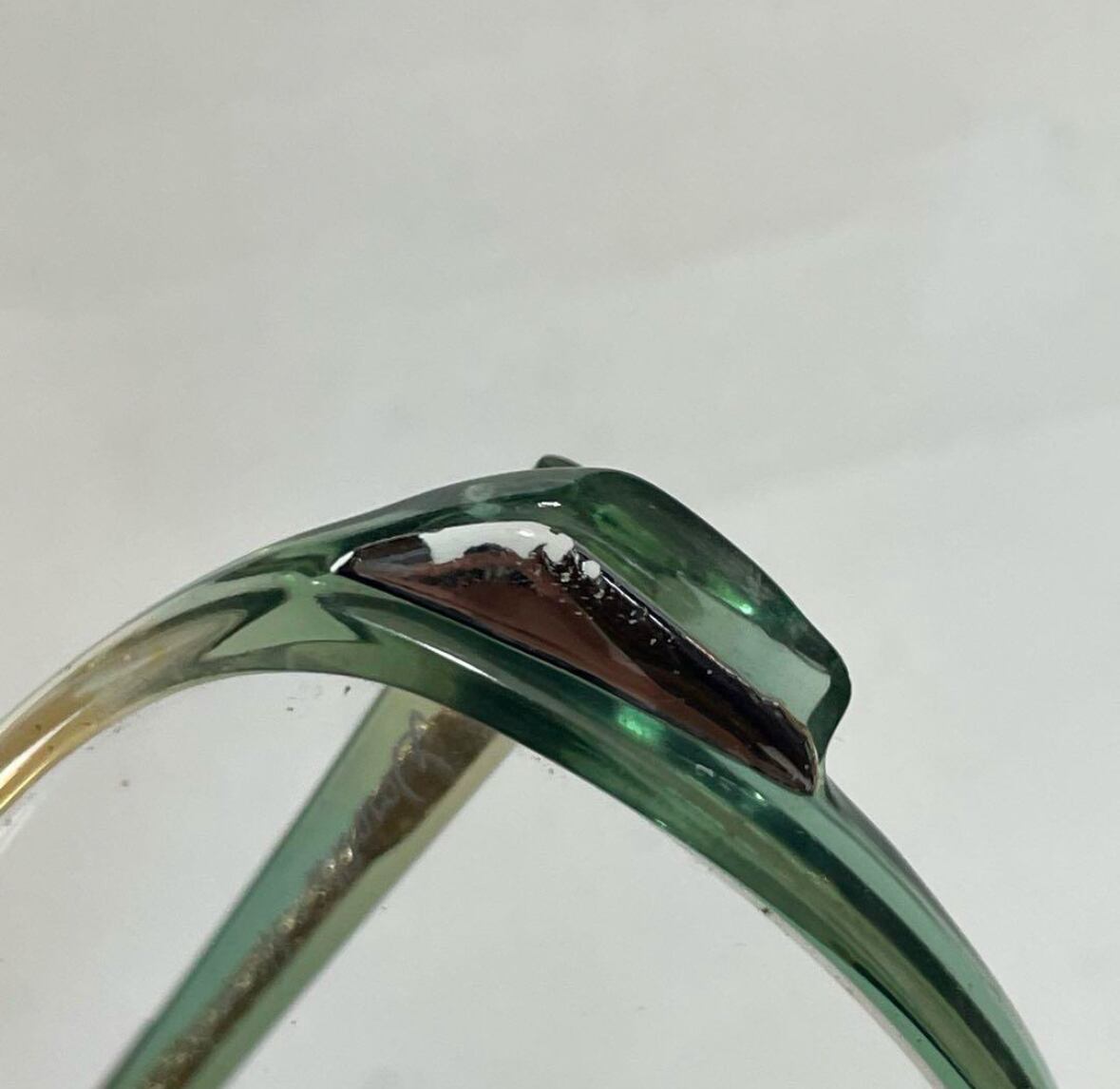 年代なりのヤレと小傷、フレーム左の装飾箇所にスクラッチが見えますが、着用には問題の無い程度です。