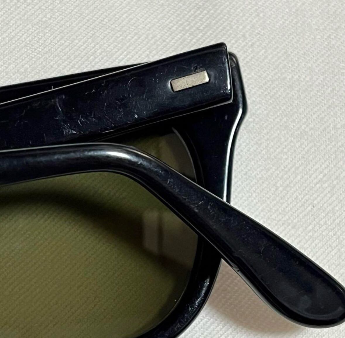 フレーム正面右側の傷、レンズの傷などが見えますが、着用には問題の無い程度のコンディションです。