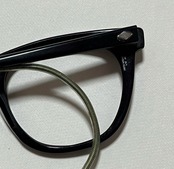 こちらはTITMUSの定番である、VIP SAFETYとと良く似たシェイプながら、フロントにティトマスの特徴である”UFOリベット”が備え付けられていないタイプ。その中でも非常に珍しい縄手のテンプルが用いられています。