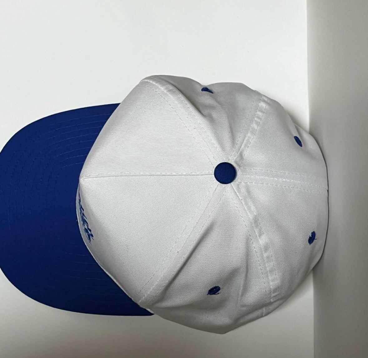 白と青のカラーリングが映えるボディのフロントプリントに、アメリカ国旗とショップ名のプリントが施された存在感のある1点。