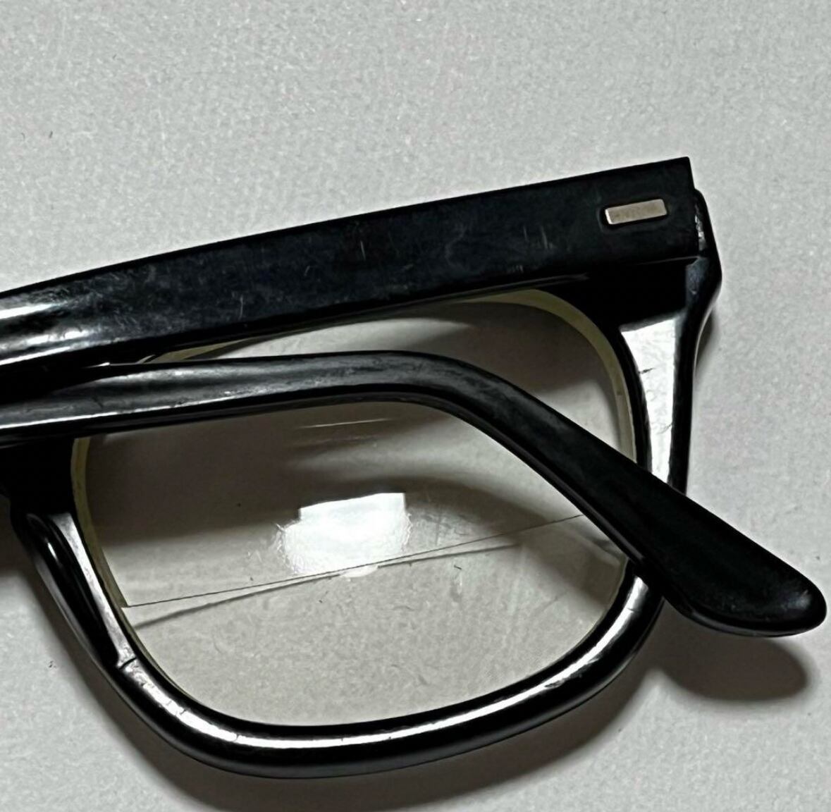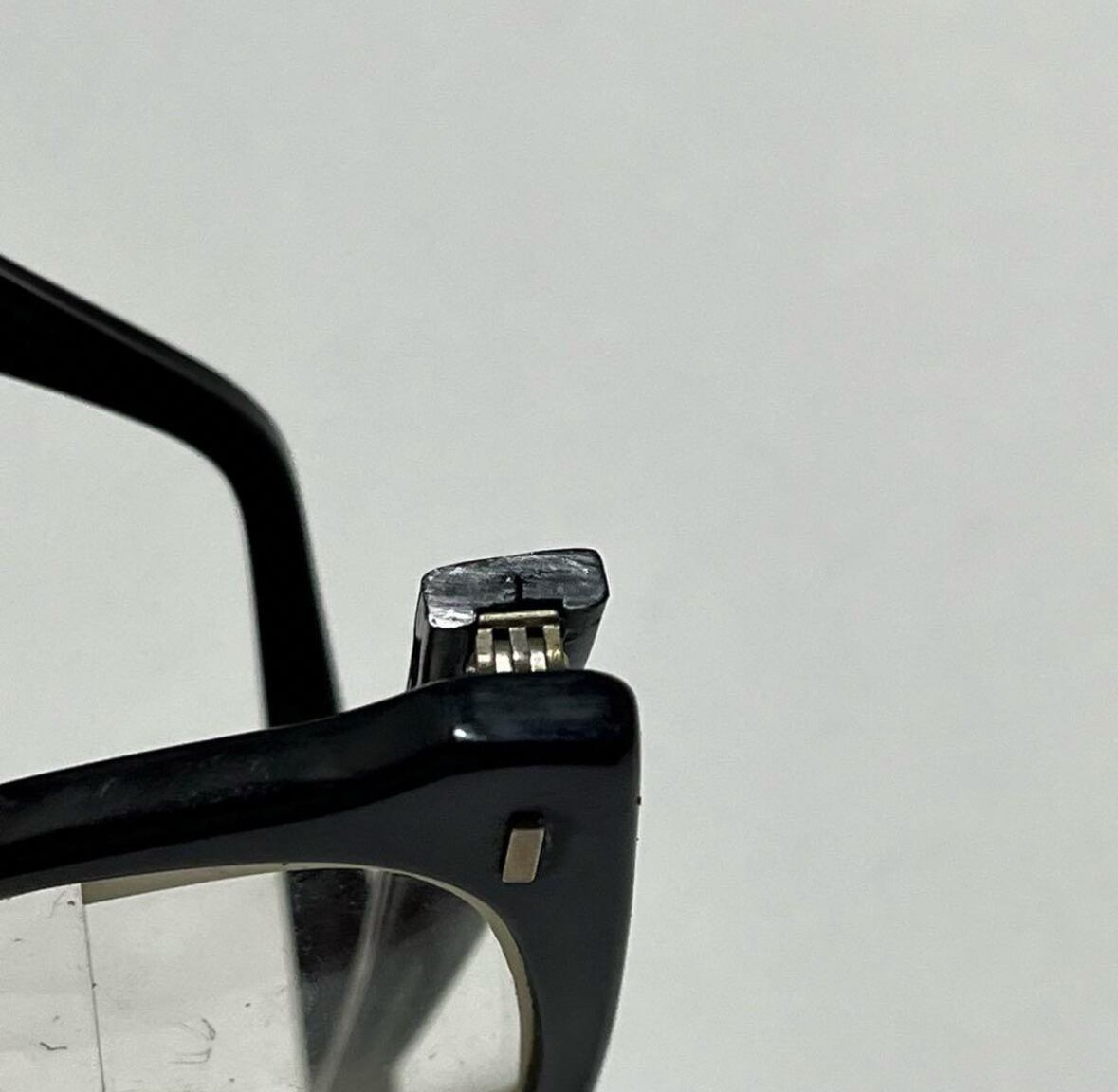 各部年代なりのスレと小傷、レンズの傷、両テンプル根元の僅かなクラックとやや白化などが見えます。