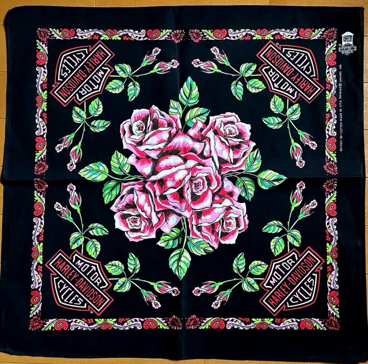 90s デッドストック HARLEY DAVIDSON バンダナ バラ ローズ