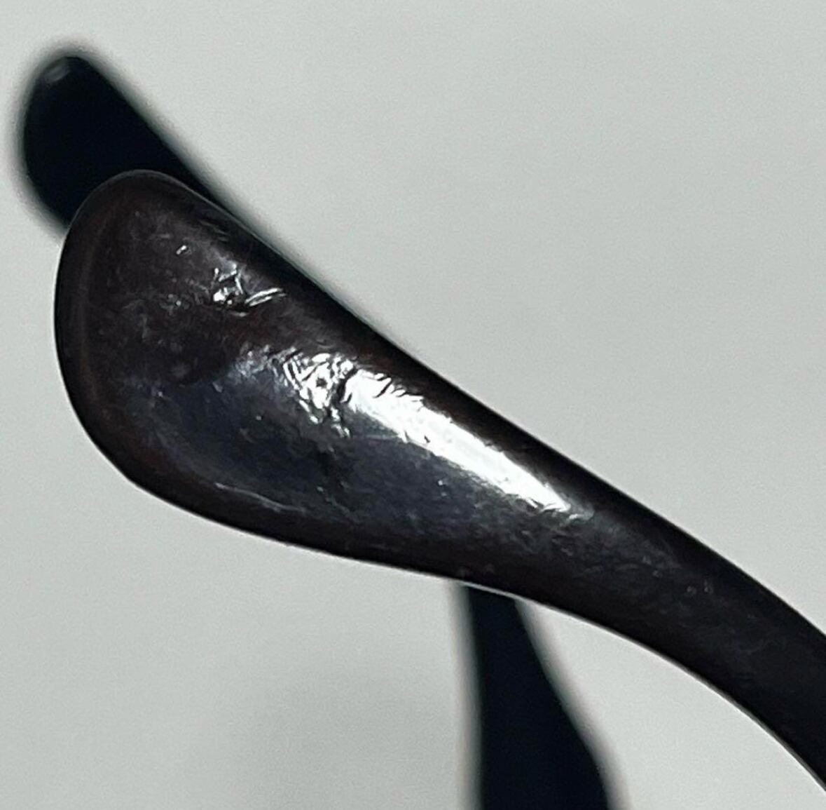 やや厚みのあるフレームや、リブが入ったテンプル飾など、面白いディテールが散見されます。