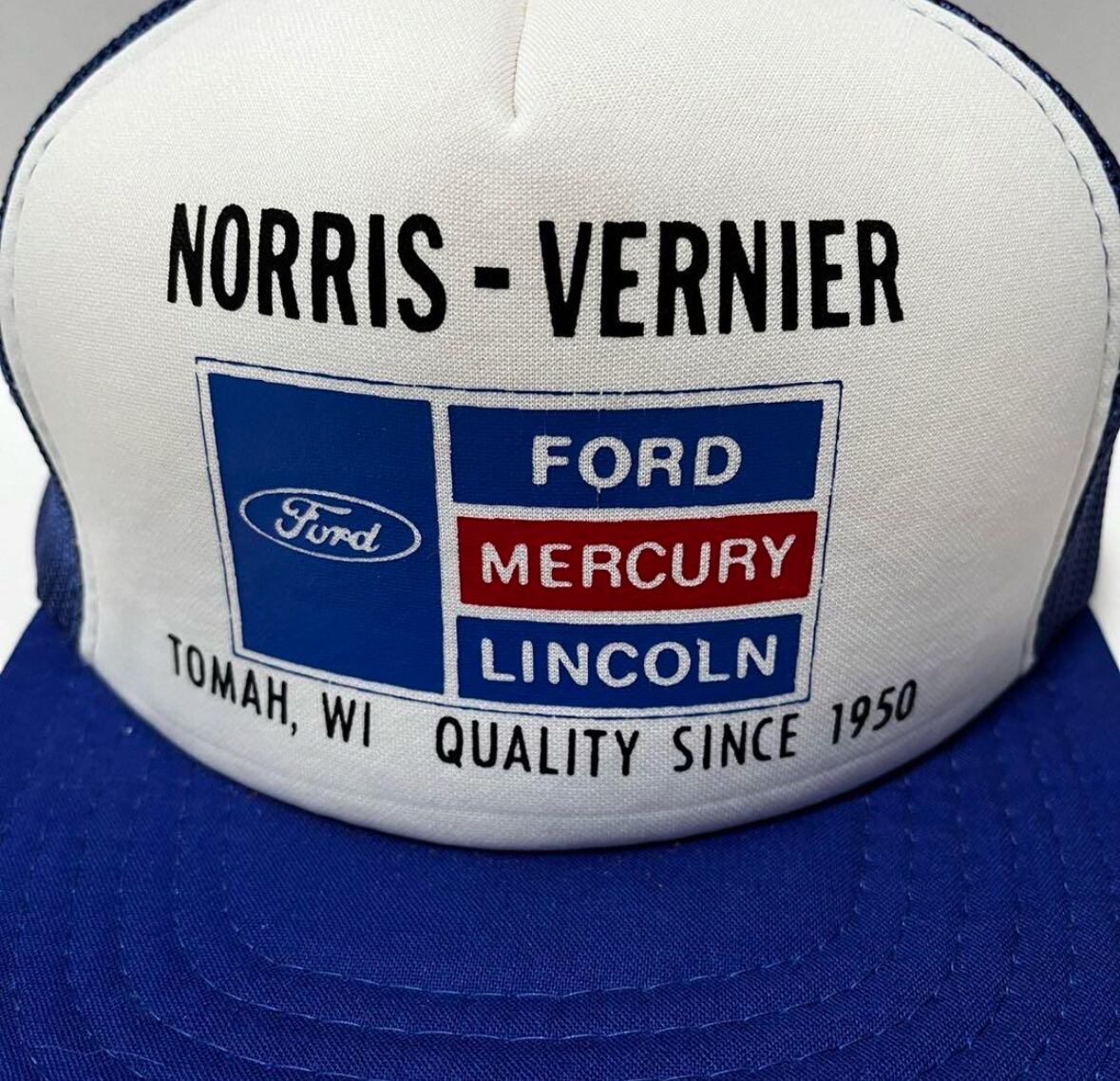 青と白の組み合わせが映えるボディのフロントパネルに、フォードディーラー定番のデザインが施された報道の1点。数多くのブランドがサンプリングする人気の高いデザインです。