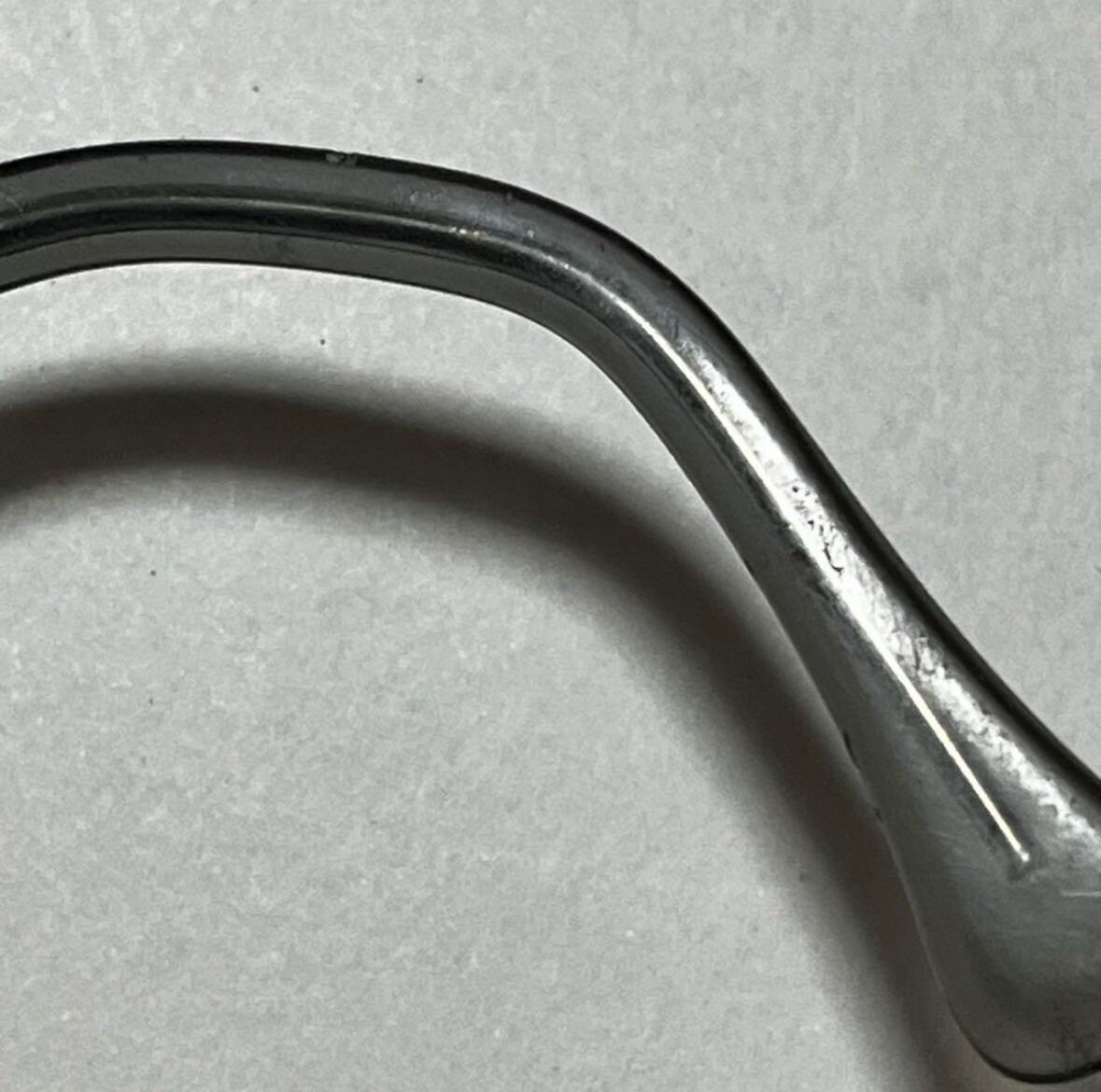 各部年代なりのヤレや小傷、レンズの傷、またテンプル内側の凹み等が見えます。
