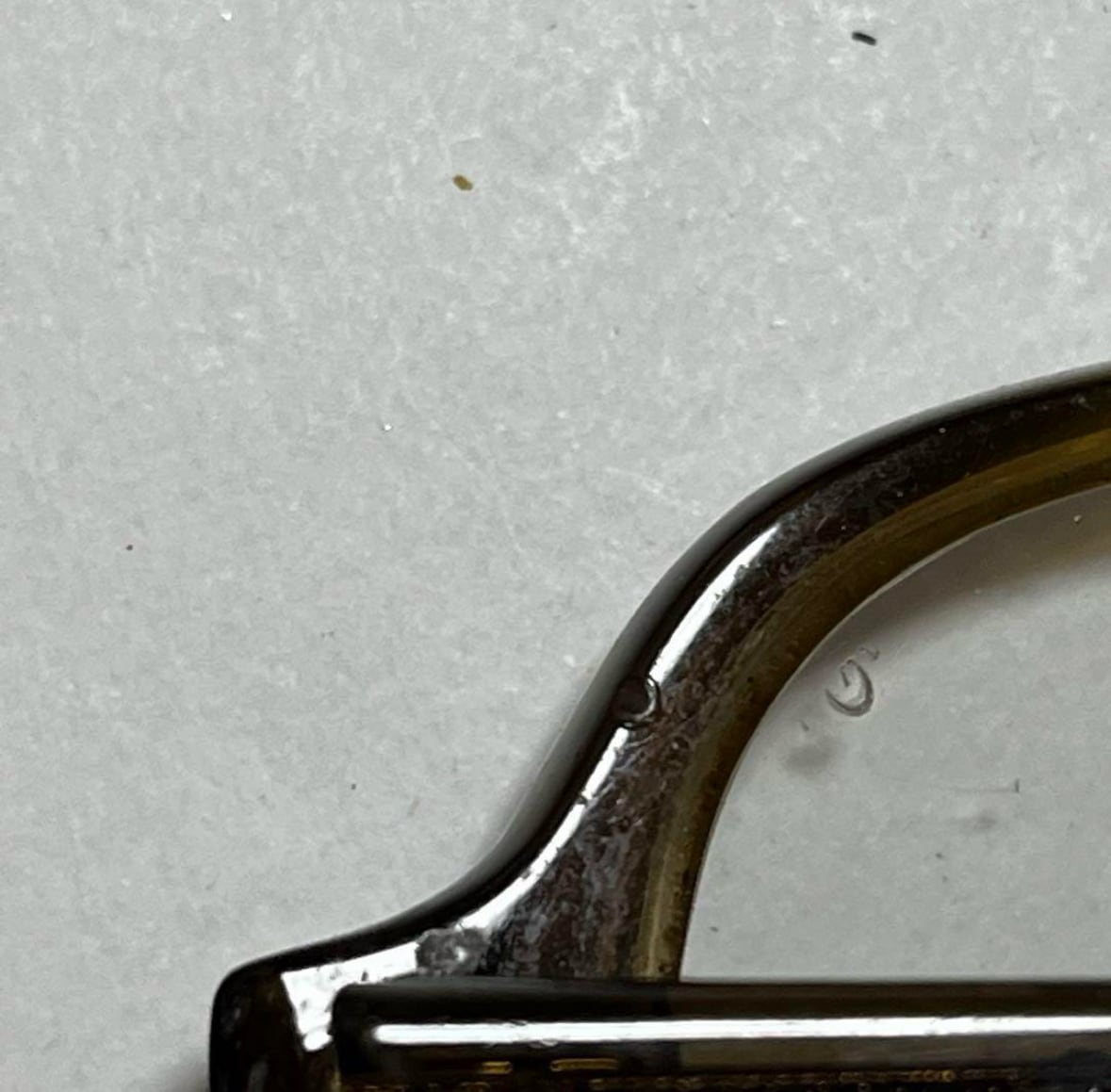 各部小傷やアタリ、凹み、レンズの傷、フレームのやや歪み、また元々テンプルにウィンドガードがついていたと見え、そのリベットが残っています。