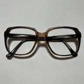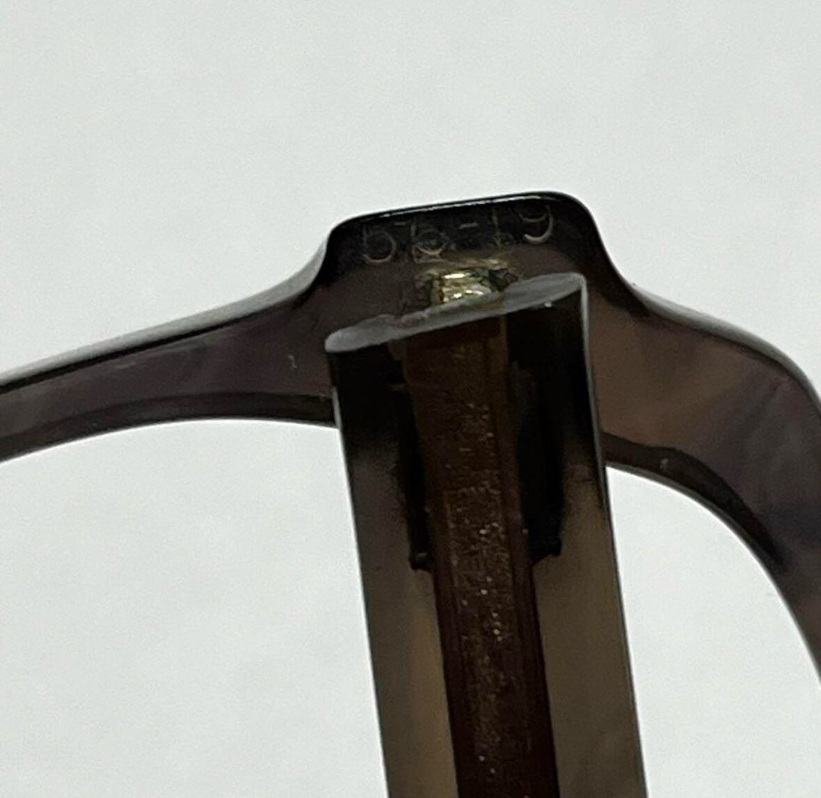 比較的にキャッツアイ等のアールデコ調のフレームが多いこのブランドとしては珍しい、セーフティグラス感の強い一本です。