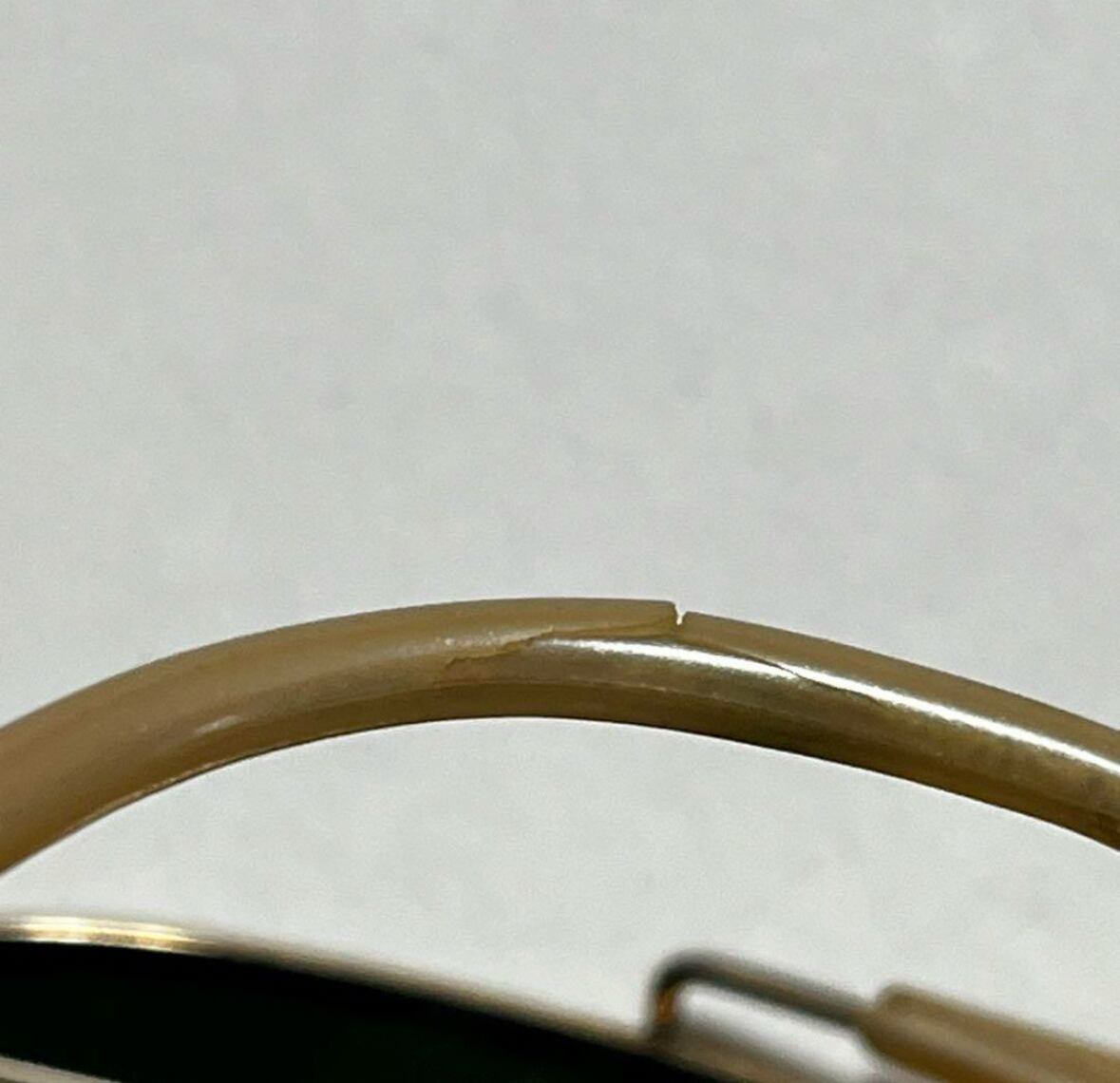 各部レンズを含め、年代なりの小傷やヤレ、またテンプルエンドのカバーに亀裂が見えます。
