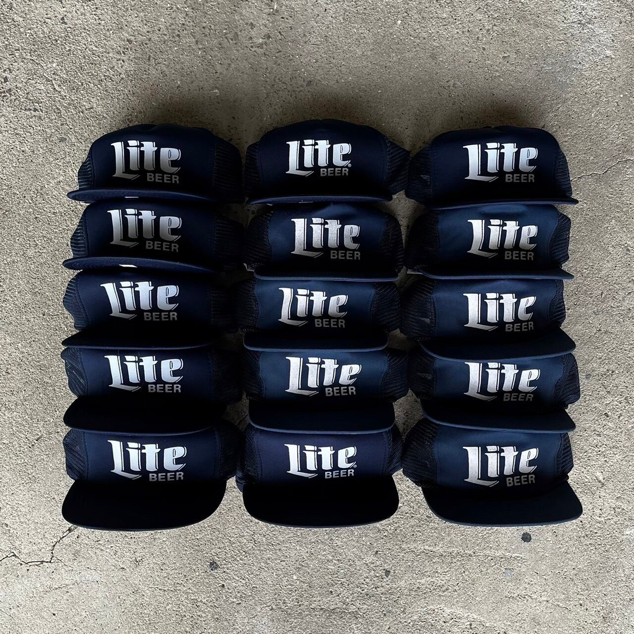 80~90年代頃のものと見えるLITE BEERのトラッカーキャップです。