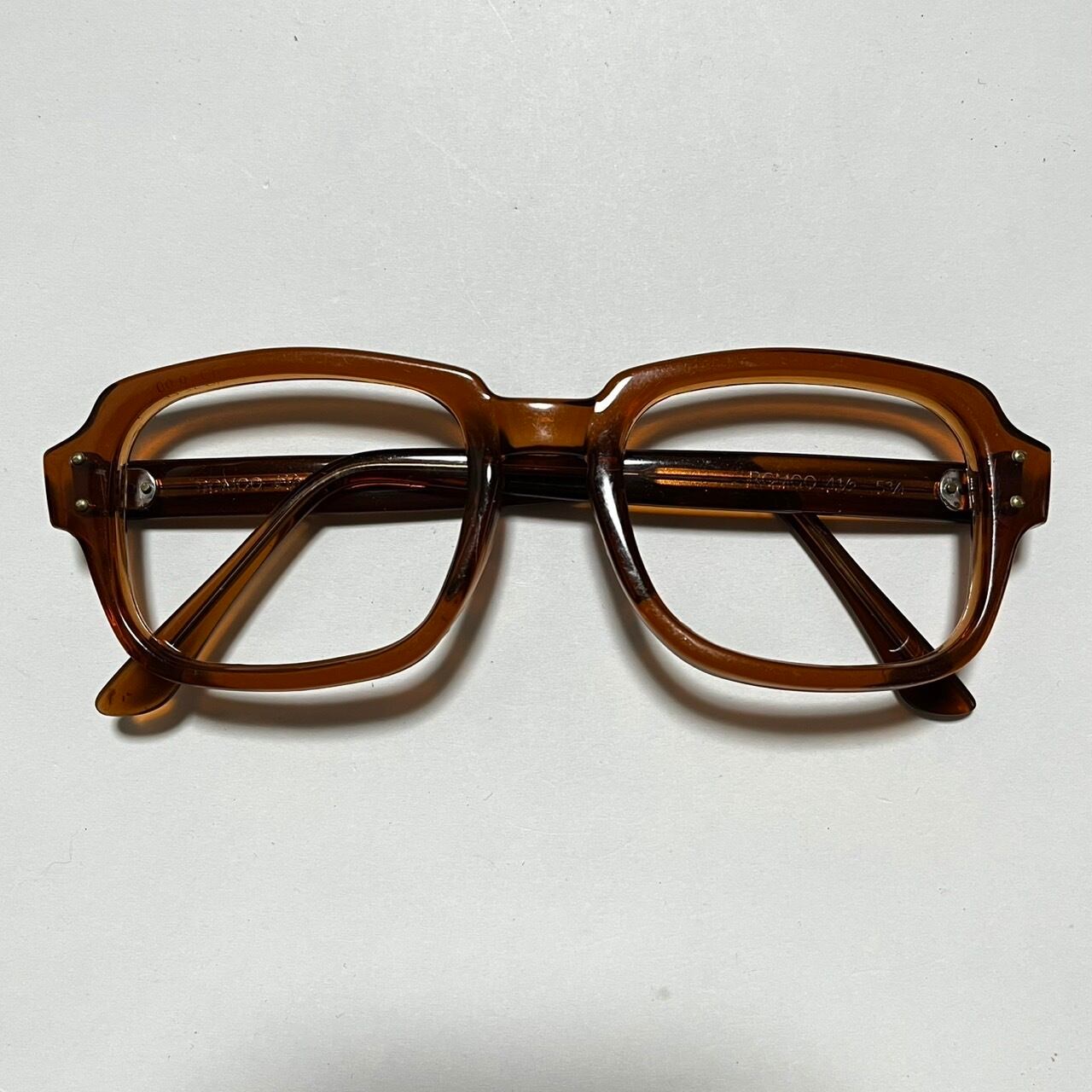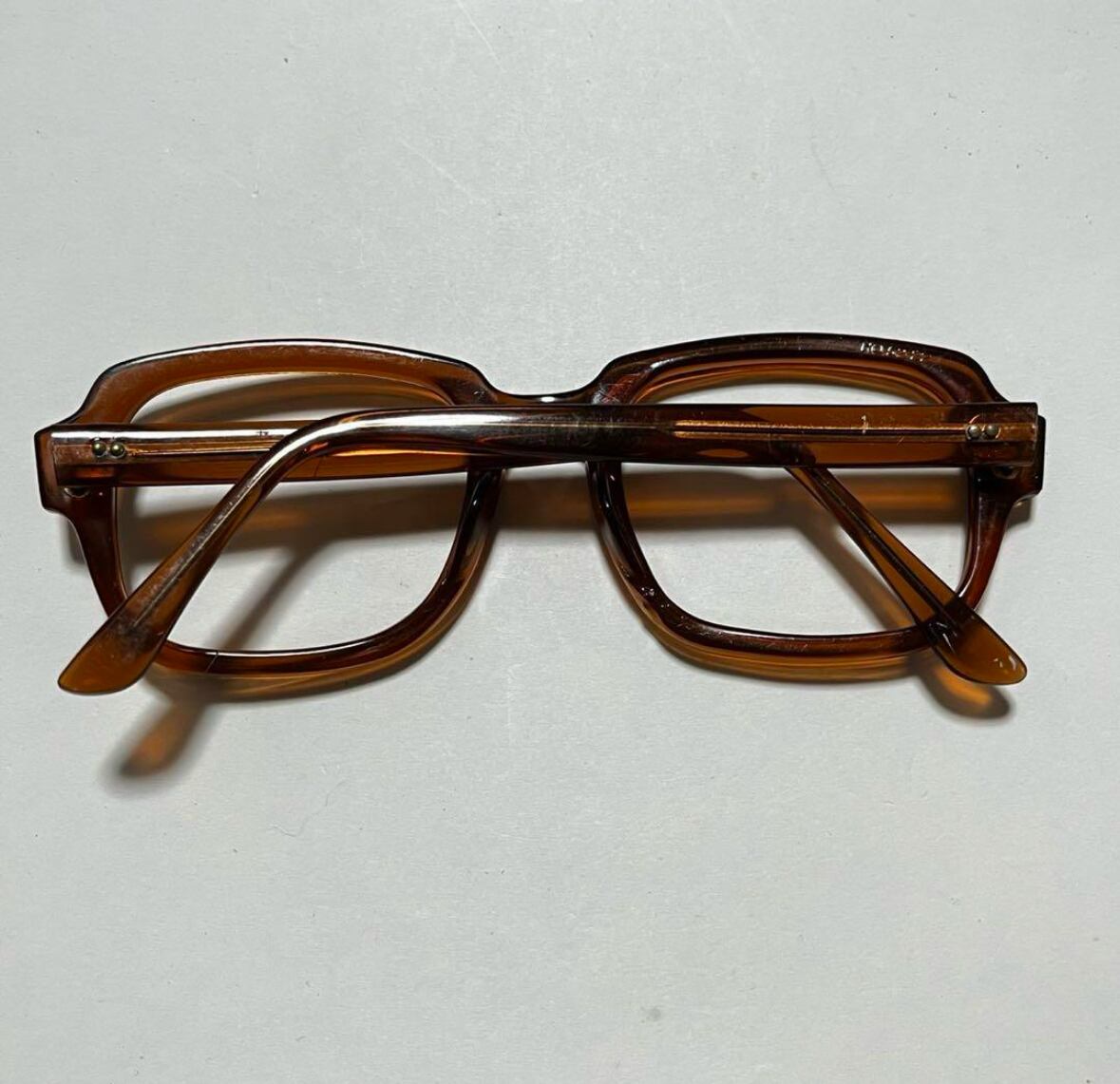 各部年代なりの小傷やスレ、フレーム裏側ノーズパッド周辺のチップ、テンプルのクラック、また酸化臭は見えますが、透明感の残る悪くないコンディションと感じます。