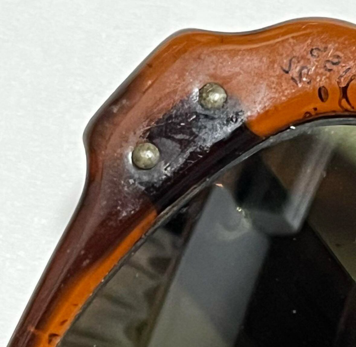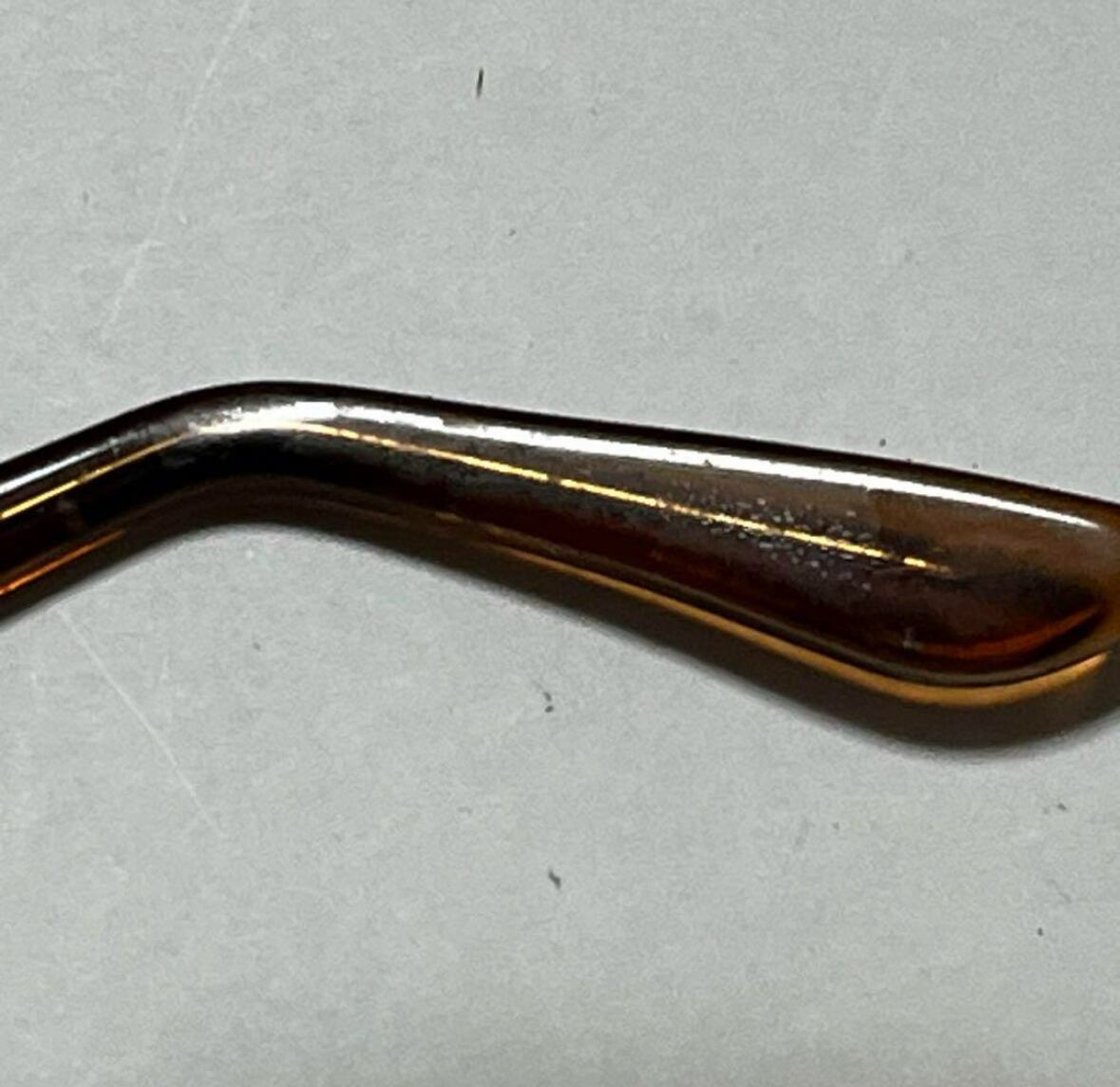 各部年代なりの小傷やスレ、フレーム左とテンプル外側のスレ、またテンプルの僅かな窪み、若干の歪み等が見えます。